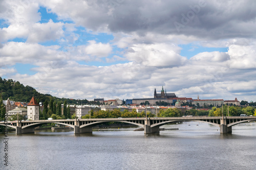 Naklejka premium Dramatic sky, Autumn panorama with Vltava River and Prague Castle, Central...