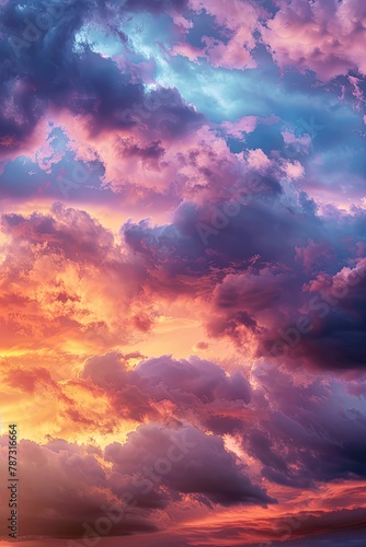 Obraz premium Dramatic sky, colorful clouds at sunset or sunrise, cloudy sky, beautiful...