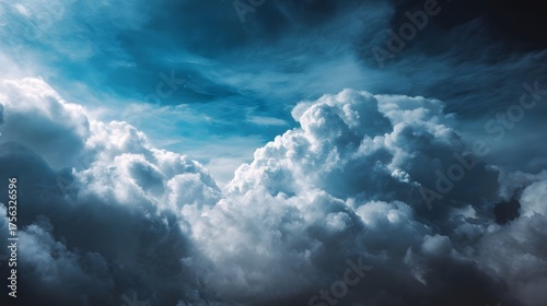 © Thares2020, Obraz premium Dramatic sky filled with voluminous clouds illuminated by ambient light