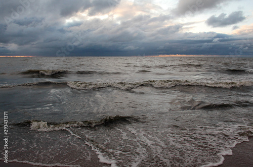 © Николай Григорьев, Fototapeta premium Dramatic sky whit dark clouds and waves on sea