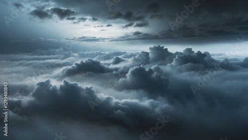 © AbstractAI, Obraz premium Dramatic Sky with Dark Rain Clouds Over Layered White Clouds at Dusk Atmospheric Background