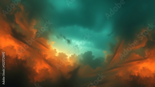 © Dragon Stock, Fototapeta premium Dramatic Sky with Fiery Clouds and Teal Hues