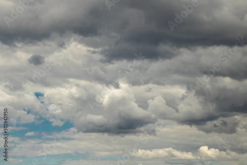 Obraz premium Dramatic sky with grey and black clouds in a panoramic scenery