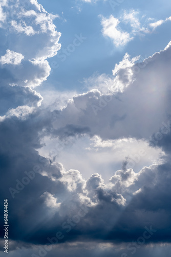 © Anat art, Obraz premium Dramatic sky with grey clouds over the city before the storm. Weather before or after a storm.