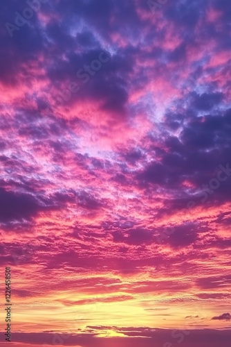 Fototapeta premium Dramatic sky with pink and purple clouds at sunset creating a vibrant...