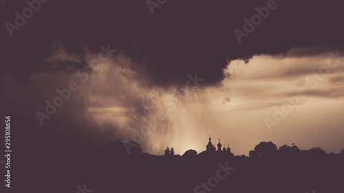 Obraz premium Dramatic sky with rainy clouds in sepia tones