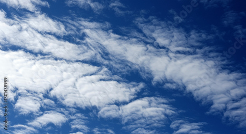 Fototapeta premium Dramatic sky with wispy white clouds on a blue backdrop