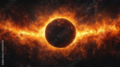 Obraz premium Dramatic Solar Eclipse With Fiery Halo Effect In Cosmic Setting