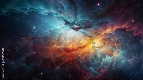 Fototapeta premium Dramatic space view moving through universe galaxies stars and nebulae. Generative ai