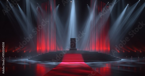 Fototapeta premium Dramatic stage with red and blue lighting for performance or presentation