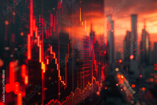 © standret, Naklejka premium Dramatic stock market downturn against city skyline