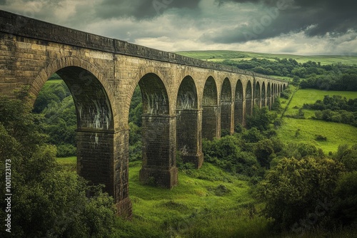 Fototapeta premium Dramatic stone bridge over lush green valley