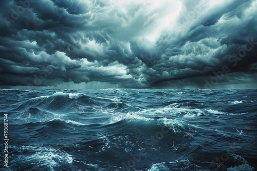 Fototapeta premium Dramatic storm clouds gathering over a dark and choppy ocean