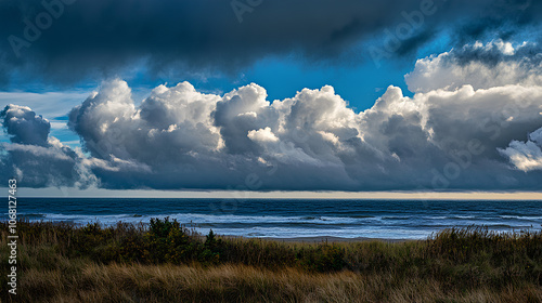 Obraz premium Dramatic storm clouds gathering over the ocean, intense weather, approaching...