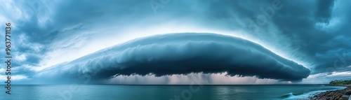 Fototapeta premium Dramatic storm clouds gathering over the ocean, intense weather, approaching...