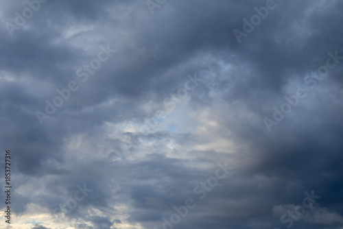 Fototapeta premium Dramatic storm clouds illuminated by soft sunset light in evening sky