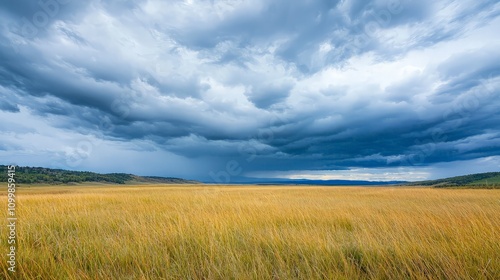 © sobartea, Obraz premium Dramatic storm clouds over a golden field.