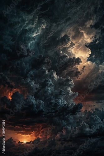 Fototapeta premium Dramatic storm clouds with glowing light, atmospheric digital painting