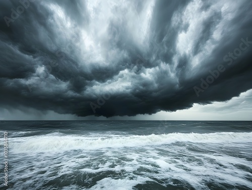 © Aodsy, Obraz premium Dramatic Stormy Clouds Over Ocean Water