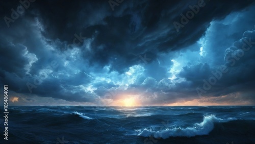 © piyawat, Obraz premium Dramatic Stormy Sea at Sunset with Turbulent Waves Crashing on Shore