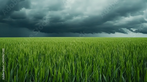 Obraz premium Dramatic Stormy Skies Overshadow Lush Green Meadow Landscape