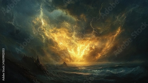 Naklejka premium Dramatic stormy sky above a turbulent ocean.