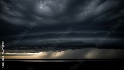 Obraz premium Dramatic stormy sky with dark clouds and sunset glow