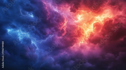 © tono boys, Fototapeta premium Dramatic stormy sky with vibrant lightning.