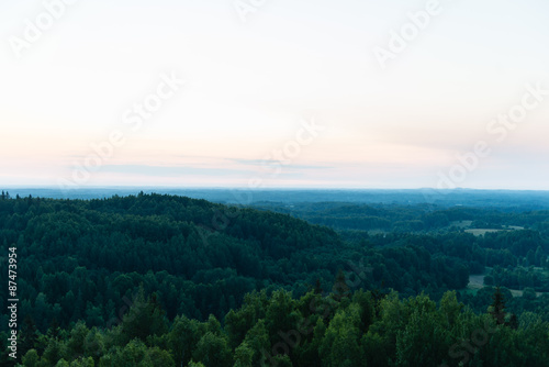 © Martins Vanags, Fototapeta premium Dramatic sunrise over dark forest