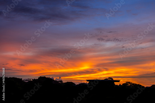 © chirawan_nt, Obraz premium Dramatic sunrise sky with clouds. Dramatic sunrise over the village Bangkok.
