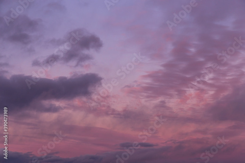 Fototapeta premium Dramatic sunrise, sunset pink violet blue sky with clouds background texture