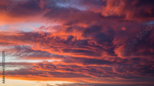 Obraz premium Dramatic sunset cloudscape vibrant hues layered clouds
