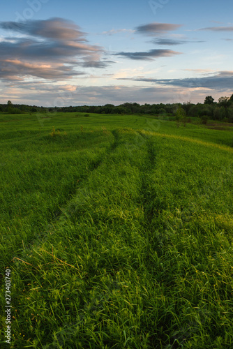 © Grigoriy, Obraz premium Dramatic sunset on the summer field.