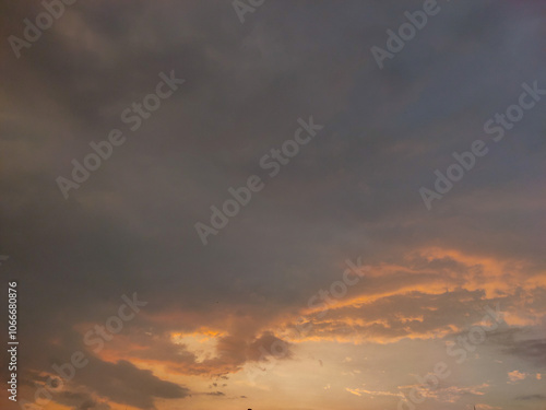 Naklejka premium Dramatic sunset or sunrise sky on twilight with Blue, Purple, black, grey,...