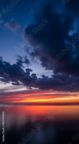 © Upin, Naklejka premium Dramatic sunset over a calm sea.