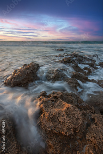 © Felix Tchvertkin, Obraz premium dramatic Sunset over a rocky beach