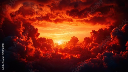 © Panupong, Fototapeta premium Dramatic Sunset Over a Sea of Fiery Clouds and Vibrant Colors