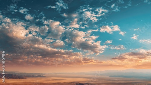 © Ilwa, Fototapeta premium Dramatic sunset over a vast desert landscape