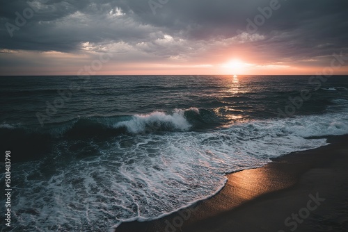 Obraz premium Dramatic Sunset Over Coastal Waves
