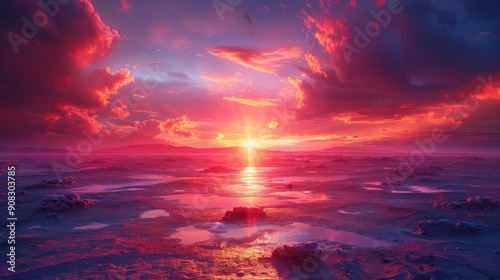 © Atmospheric stock, Fototapeta premium Dramatic Sunset over Cracked Earth 2