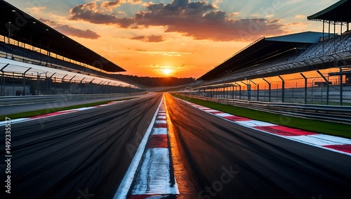 Fototapeta premium Dramatic sunset over curving racetrack asphalt