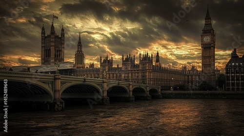 Naklejka premium Dramatic sunset over London's Houses of Parliament.