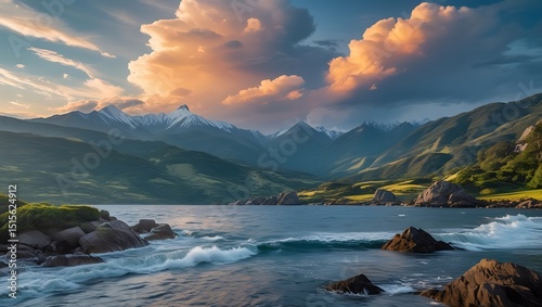 Obraz premium Dramatic Sunset Over Mountain Landscape