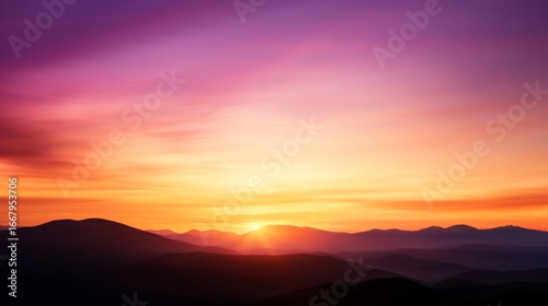Obraz premium Dramatic sunset over mountain range scenic nature landscape vibrant sky...