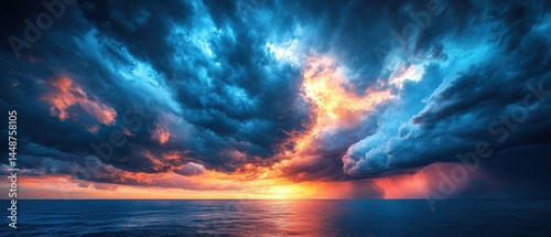 © Vlad, Fototapeta premium Dramatic sunset over ocean coastal location landscape cloudy skies
