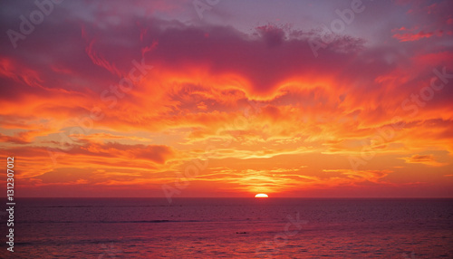 Naklejka premium Dramatic sunset over ocean horizon with vibrant hues, nature's beauty