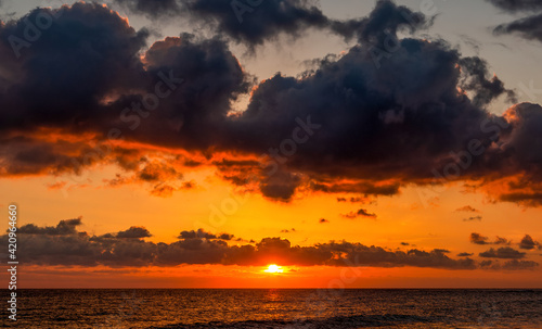 Fototapeta premium Dramatic sunset over ocean. Sky with clouds.
