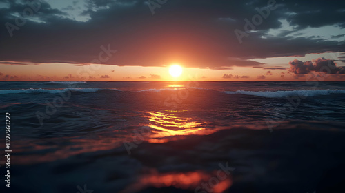 Obraz premium Dramatic Sunset Over Ocean Waves