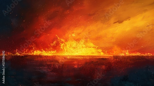 Naklejka premium Dramatic Sunset over Ocean with Fiery Orange and Red Sky Effects