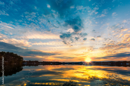 © mandritoiu, Fototapeta premium Dramatic sunset over Parsippany Lake in New Jersey